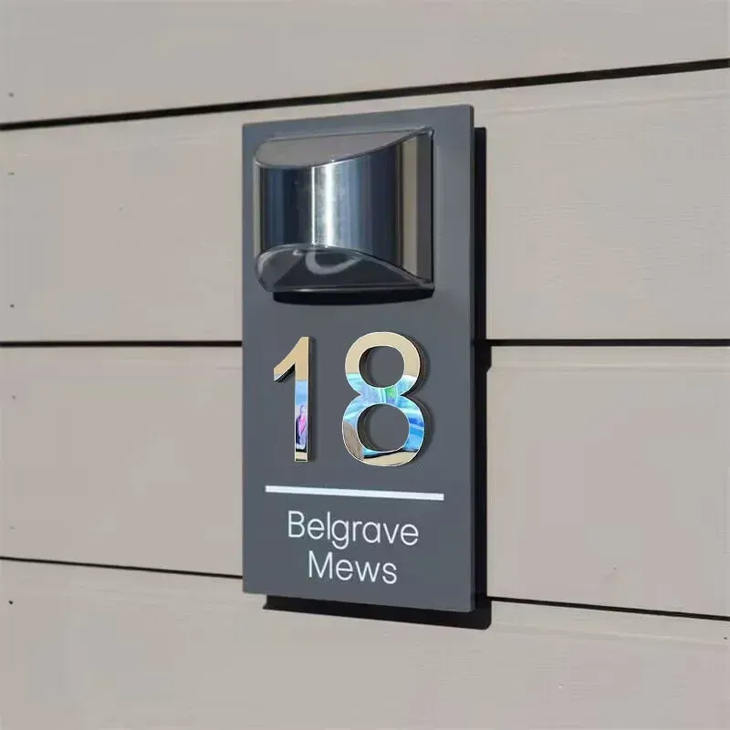 Passen Sie Ihre Tafel mit Ihrer Türnummer und Straßennamen an, um einen personalisierten Willkommensgruß für Ihr Zuhause zu schaffen. Wählen Sie zwischen lichtempfindlichen oder bewegungsempfindlichen Optionen für zusätzlichen Komfort.