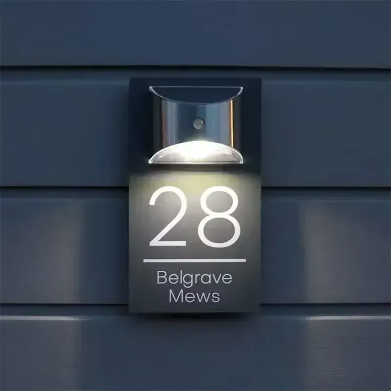 Hergestellt aus robustem 5 mm dickem matten Acryl, erzeugt das schlanke Design einen fesselnden Schwebeeffekt mit versteckten Halterungsbefestigungen. Diese Tafel hebt nicht nur die Außenseite Ihres Hauses hervor, sondern dient auch als personalisierter Leuchtturm.