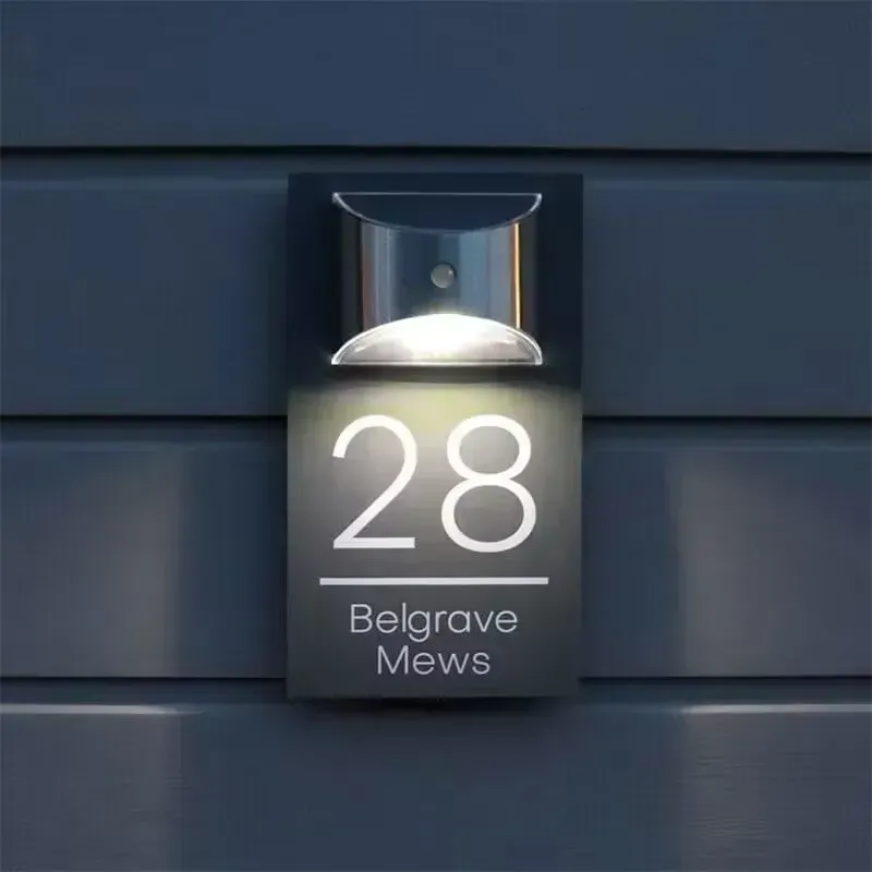 Hergestellt aus robustem 5 mm dickem matten Acryl, erzeugt das schlanke Design einen fesselnden Schwebeeffekt mit versteckten Halterungsbefestigungen. Diese Tafel hebt nicht nur die Außenseite Ihres Hauses hervor, sondern dient auch als personalisierter Leuchtturm.